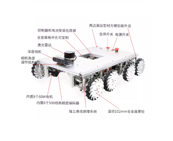 Mecanum wheel: 152mm diameter aluminum alloy wheel hub