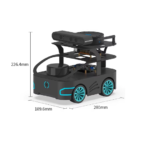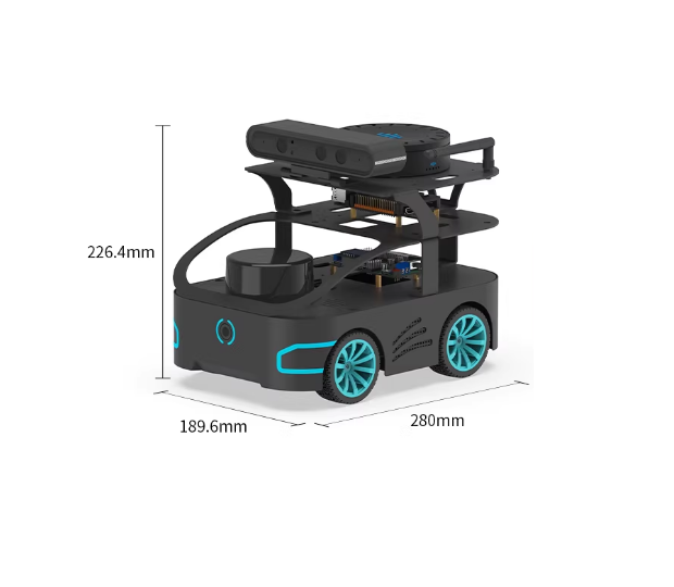 Drive structure: Front wheel servo steering, rear wheel differential drive, Ackermann structure Wheel: 65mm blue rubber wheel Size: 280 * 189 * 226mm Self weight: 4kg Load capacity: 4kg Maximum speed: 1m/s Range (speed 0.45m/s): 5h
